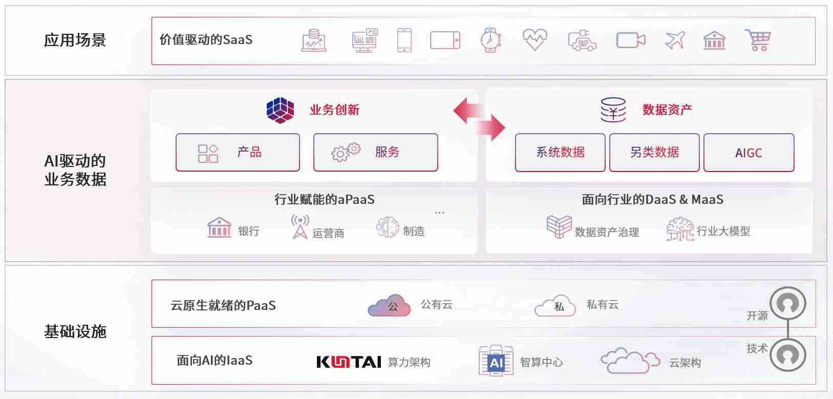 数字时代,,围绕企业数字化转型的关键要素,,尊龙数码开创性的提出数云融合战略和技术体系框架,,,,着力在云原生、、、数字原生、、、AI原生和信创产业上架构产品和服务能力,,,为处在不同数字化转型阶段的快消零售、、、、汽车、、金融、、、医疗、、、、政企、、教育、、、、运营商等行业客户提供泛在的敏捷IT能力和融合的数据驱动能力,,,,构建跨界融合创新的数字业务场景和新业务模式,,助力企业级客户建立面向未来的核心能力和竞争优势,,,,全面推动社会的数字化、、、、智能化转型升级。。